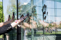 Today (4.5.18), 13 performers from artist collective Fossil Free Culture NL placed oil-black handprints on the glass facade of the Van Gogh Museum to remind the institution that dirty money from oil giant Shell stains our culture.