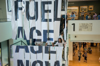 Around 14:00 (9.6.18), one of the 35 Fossil Free Culture Netherlands performers positioned herself on the monumental staircase of the Van Gogh Museum's main building in Amsterdam, ready to declaim the collective’s newly penned manifesto. As her words rang out, others unfurled long paper banners from the balustrades one by one. Only after the declamation was complete, was the full text legible